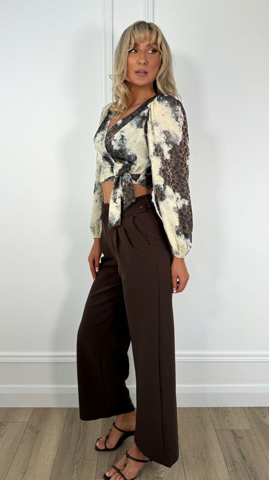 Sofia Printed wrap Blouse - Beige and Brown