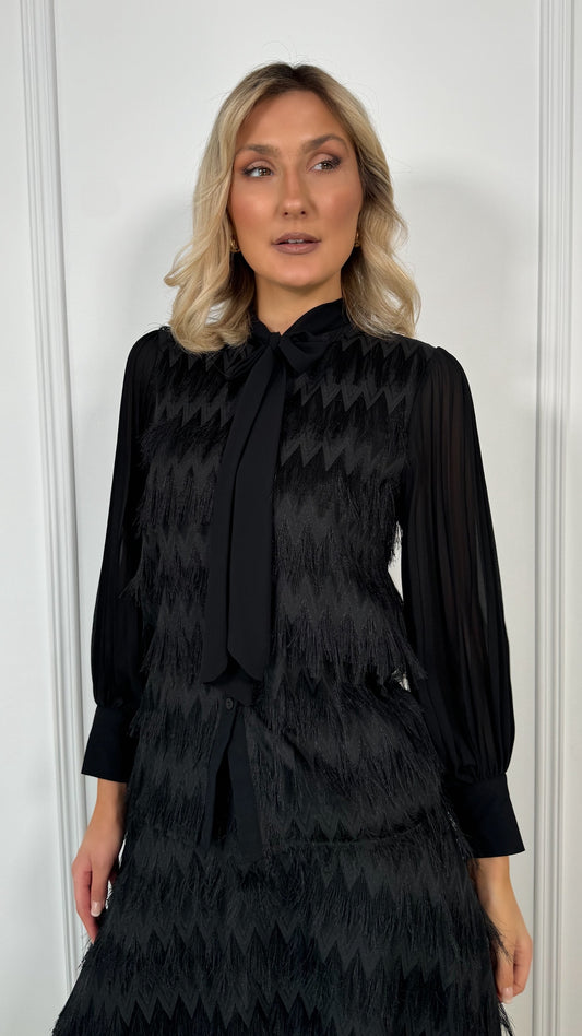 Sophie Fringe Detail Shirt with Bowknot - Black