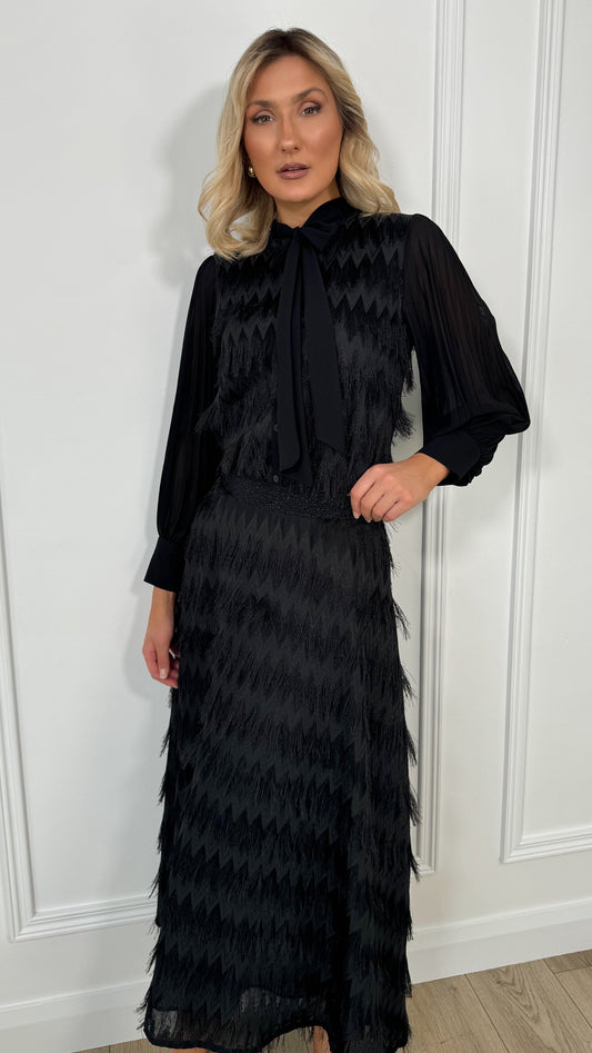 • Amelie Maxi Faux Leather Skirt with Button Details - Black