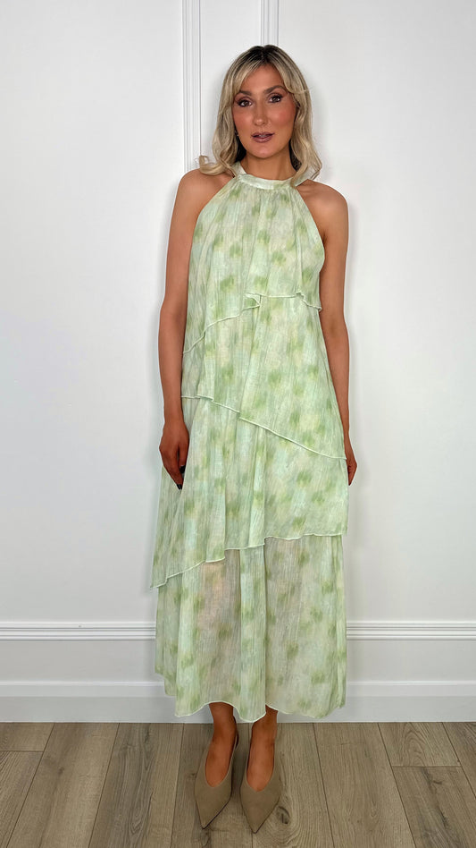 Arlene Elegant Choker Cowl Neck Puffy Sleeve Blouse - Lime Green