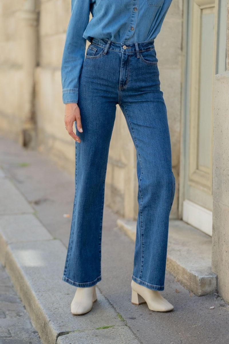 The Gabrielle jeans is a wide, it is a cut that will flare from the hips to the bottom of the leg.