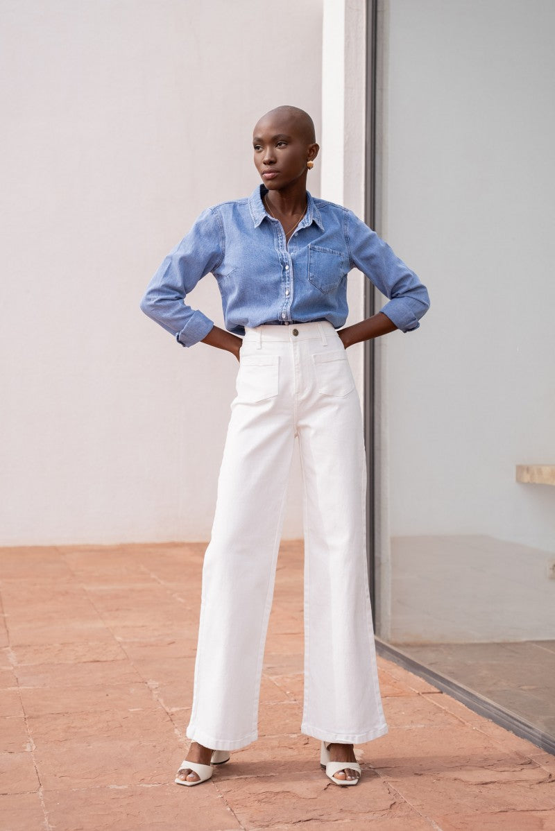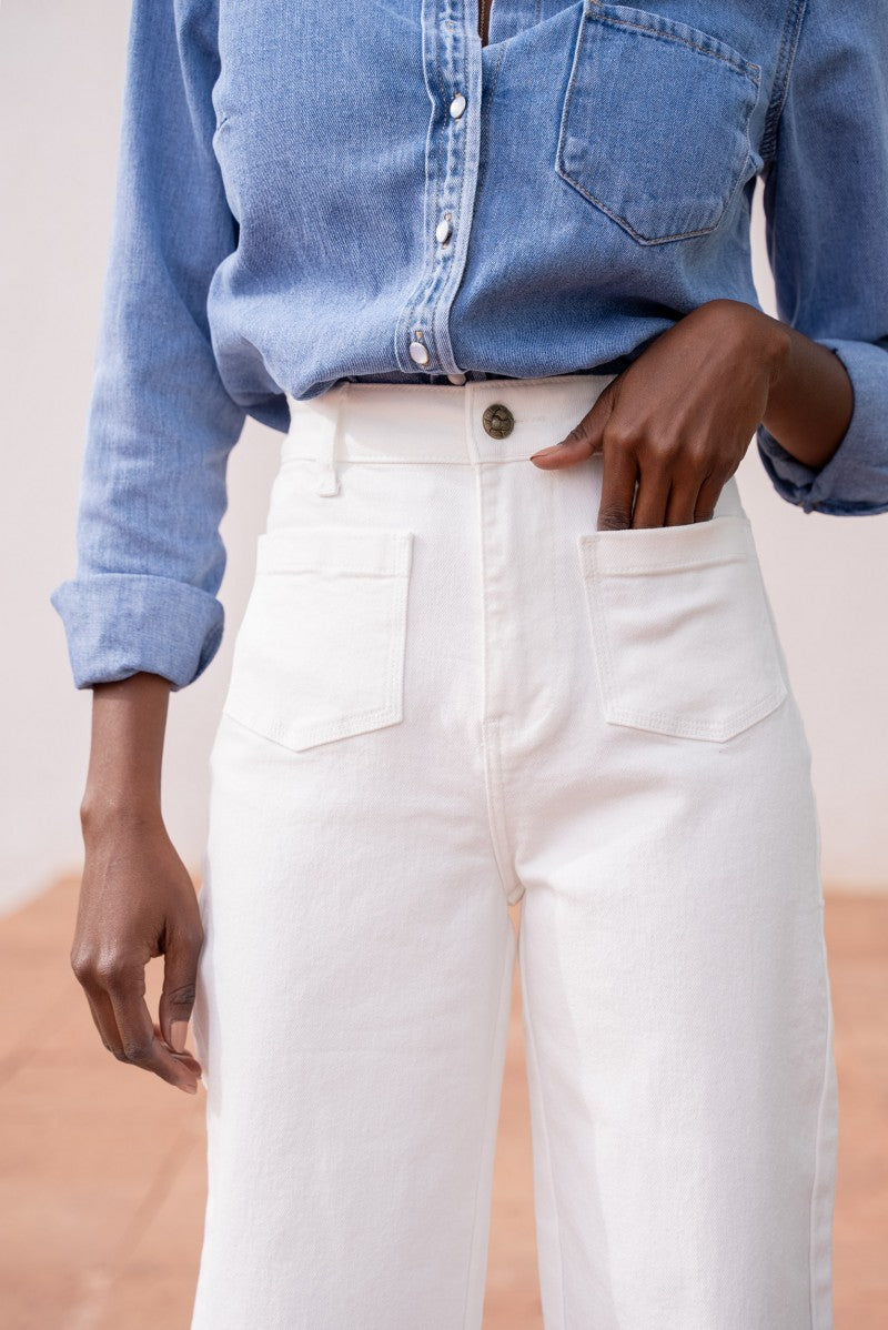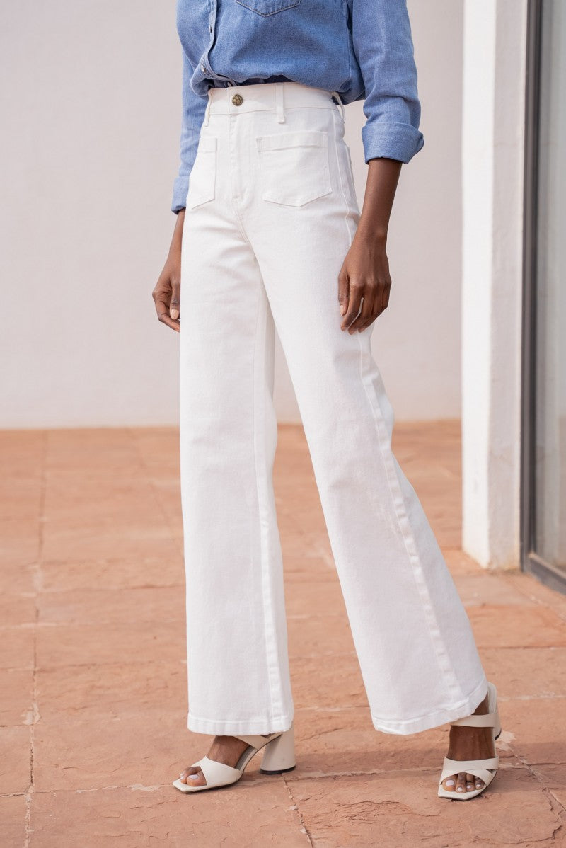 Gaspard Wide Leg Trousers with Front Pocket - White