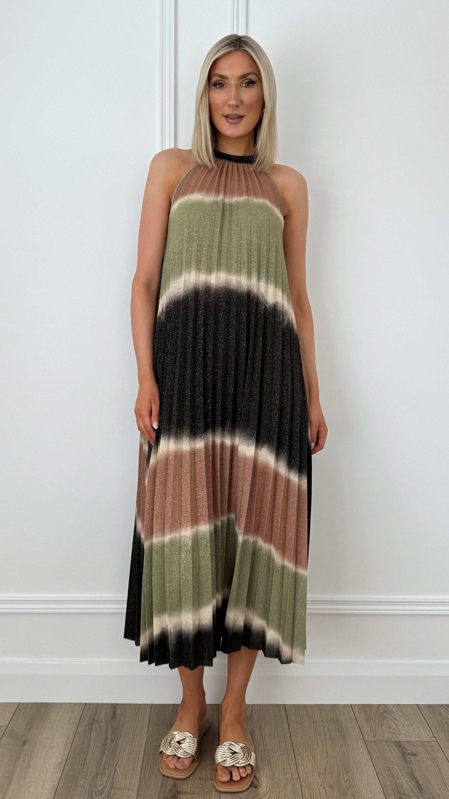 Rachel Halter Neck Pleated Shimmer Tent Dress - Multicolour