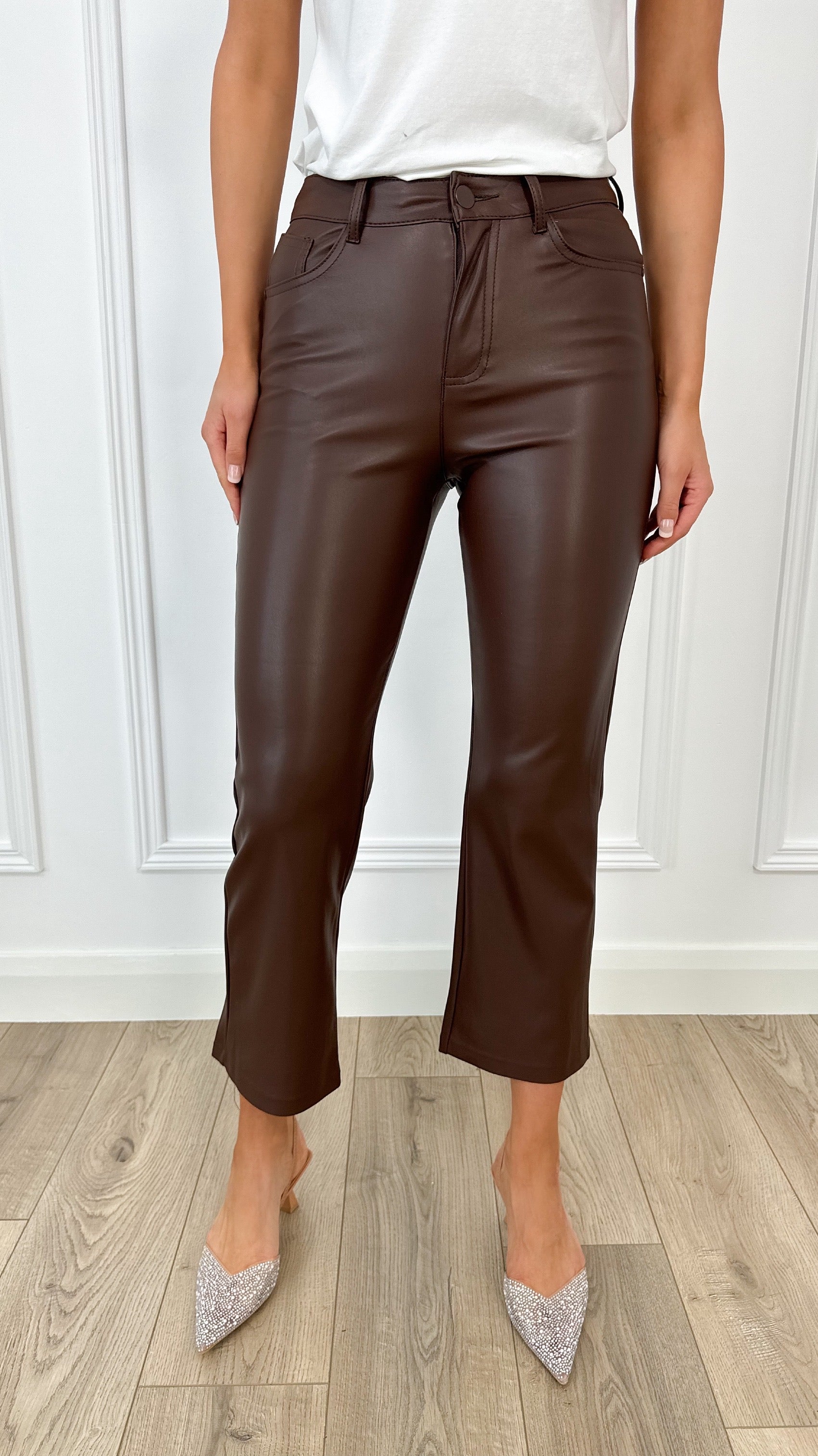 Solange straight leatherette pants - Chocolate